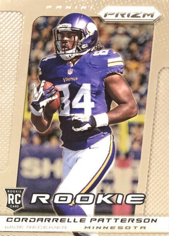 The Cordarrelle Patterson 2013 Prizm #216 Base Rookie card in Raw condition has moved up $5.01 (+506%) in the last 30 days and was last sold for $6.00 .