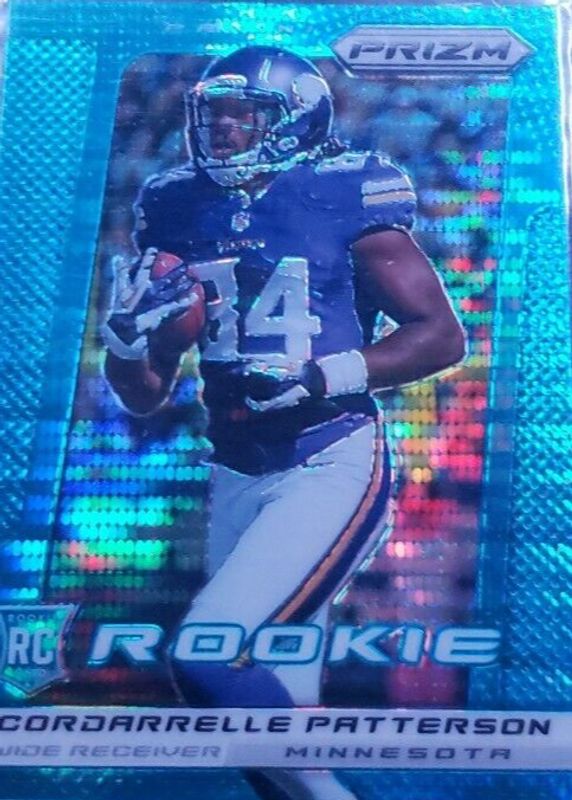 The Cordarrelle Patterson 2013 Prizm #216 Light Blue Pulsar Rookie card in Raw condition has not changed in price in the last 30 days and was last sold for $5.50 .