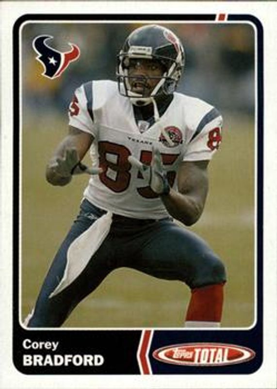 The Corey Bradford 2003 Topps Total #77 Base card is 1 of 2 Corey Bradford's card variations in the 2003 Topps Total set being tracked by Sports Card Investor, including Silver.