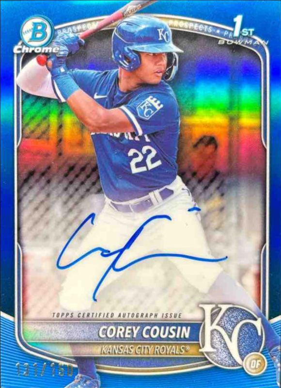 2025 Bowman Chrome Corey Cousin Auto Blue Refractor 1st Prospect #13/150 Royals