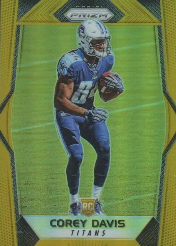 Corey Davis' Football cards are available in at least 54 sets. Corey Davis' biggest 7-day price movers are 2017 Prizm #229 Gold /10, 2019 Origins #FF-18 Future Fabrics - Green /5, and 2019 Origins #FF-18 Future Fabrics - Gold /10.