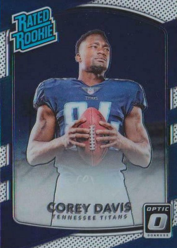 The Corey Davis 2017 Optic #166 Base Rookie card in Raw condition has moved up $0.16 (+10.1%) in the last 30 days and was last sold for $1.75 .