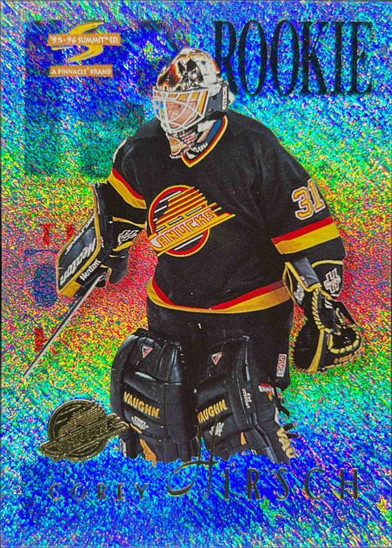 The Corey Hirsch 1995 Score Summit #184 Ice card is 1 of 3 Corey Hirsch's card variations in the 1995 Score Summit set being tracked by Sports Card Investor, including Base, and Artist Proofs.