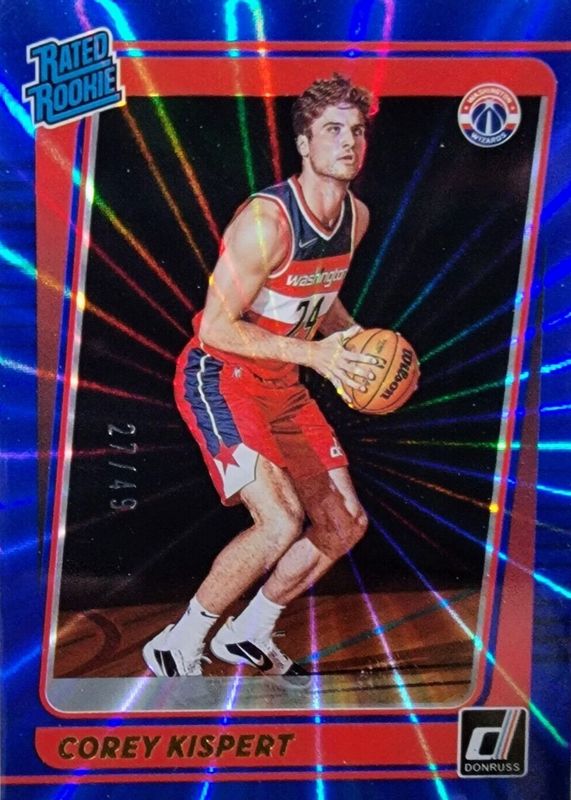 The Corey Kispert 2021 Donruss #233 Blue Laser /49 Rookie card in Raw condition has not changed in price in the last 30 days and was last sold for $5.99 .