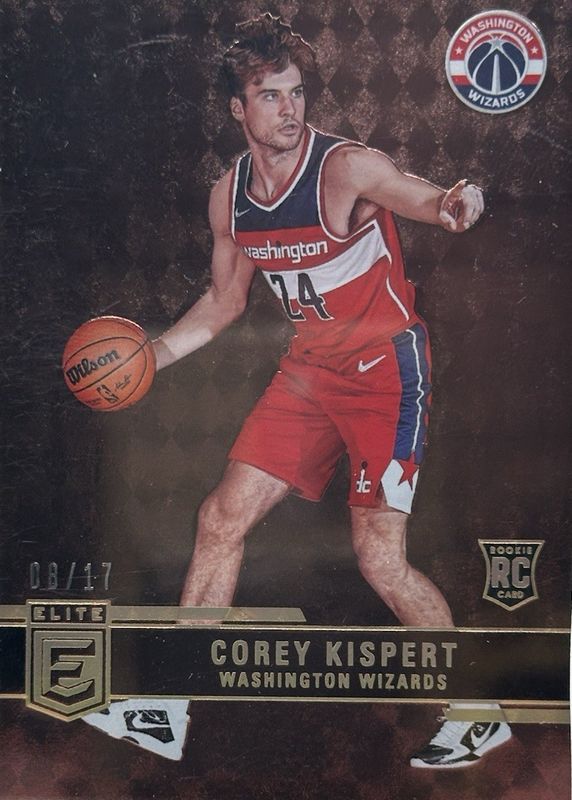 This card is 1 of 16 Corey Kispert's card variations in the 2021 Elite set being tracked by Sports Card Investor, including Base Rookie /999, Asia Exclusive, Asia Hyper Gold, Asia Hyper Red, and Aspirations (/76).