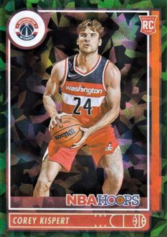 The Corey Kispert 2021 Hoops #212 Green Ice Rookie card is 1 of 44 Corey Kispert's card variations in the 2021 Hoops set being tracked by Sports Card Investor, including Base, Anniversary Edition, Blue, Hyper Blue, and Neon Green.