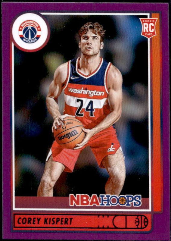 The Corey Kispert 2021 Hoops #212 Purple Rookie card is 1 of 44 Corey Kispert's card variations in the 2021 Hoops set being tracked by Sports Card Investor, including Base, Anniversary Edition, Blue, Green Ice, and Hyper Blue.
