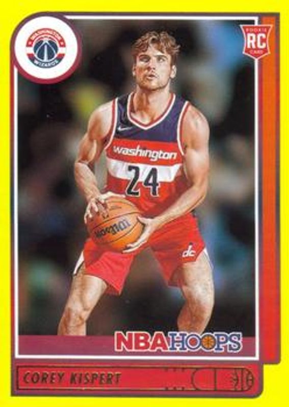The Corey Kispert 2021 Hoops #212 Yellow Rookie card is 1 of 44 Corey Kispert's card variations in the 2021 Hoops set being tracked by Sports Card Investor, including Base, Anniversary Edition, Blue, Green Ice, and Hyper Blue.