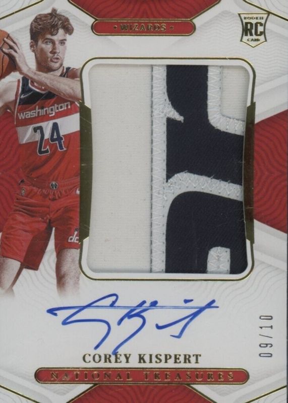 This card is 1 of 10 Corey Kispert's card variations in the 2021 National Treasures set being tracked by Sports Card Investor, including Rookie Patch Auto - Bronze (/49), Rookie Patch Auto - NBA 75th (/75), Rookie Patch Auto - Pink (/25), Rookie Patch Auto /99, and Rookie Patch Auto - Gold FOTL /24.