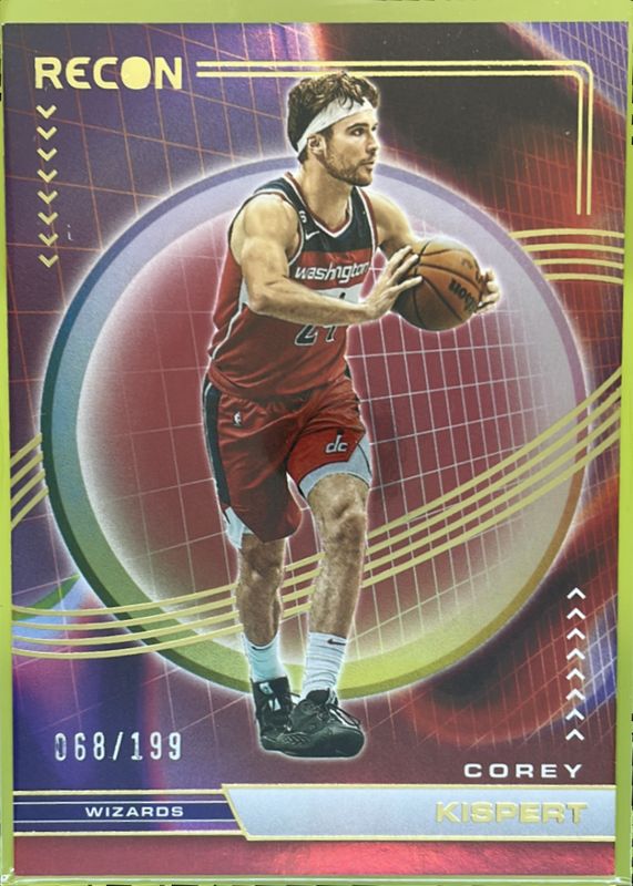The Corey Kispert 2022 Recon #140 Red /199 card is 1 of 23 Corey Kispert's card variations in the 2022 Recon set being tracked by Sports Card Investor, including Base, Holo, Bronze /299, Blue /99, and Dots /(SSP).