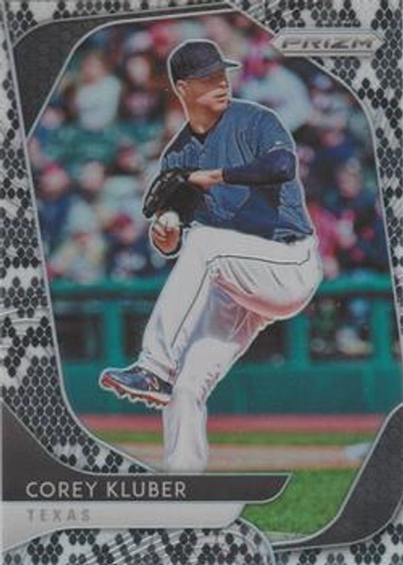 The Corey Kluber 2020 Prizm #167 Snakeskin /50 card is 1 of 37 Corey Kluber's card variations in the 2020 Prizm set being tracked by Sports Card Investor, including Base, Blue, Carolina Blue, Cosmic Haze, and Green.