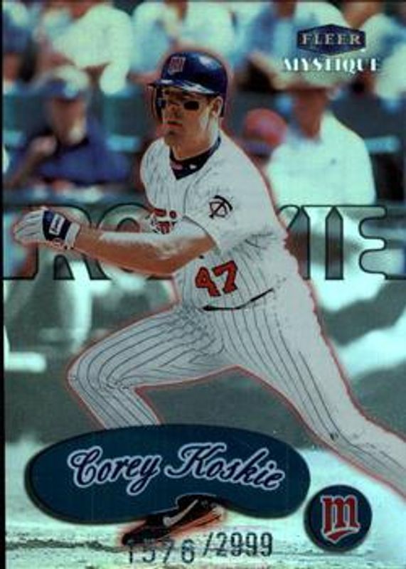 The Corey Koskie 1999 Fleer Mystique #116 Base /2999 Rookie card is 1 of 2 Corey Koskie's card variations in the 1999 Fleer Mystique set being tracked by Sports Card Investor, including Masterpiece /1.