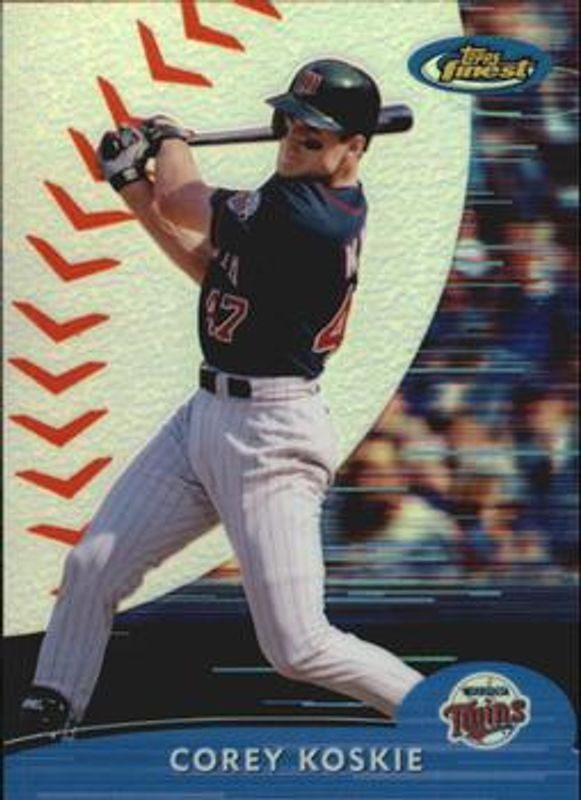 The Corey Koskie 2000 Topps Finest #34 Refractor /1000 card is 1 of 3 Corey Koskie's card variations in the 2000 Topps Finest set being tracked by Sports Card Investor, including Base, and Gold Refractor /100.
