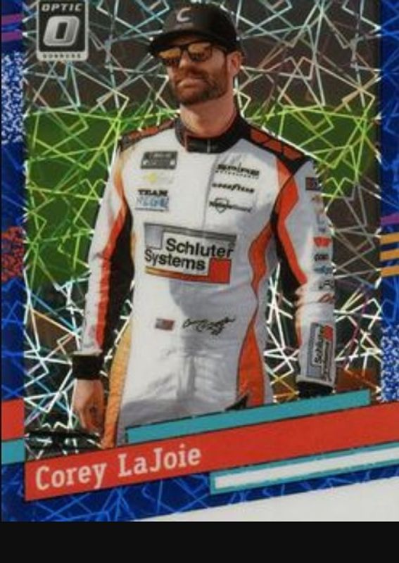 The Corey LaJoie 2024 Donruss NASCAR #113 Optic Blue Velocity card is 1 of 90 Corey LaJoie's card variations in the 2024 Donruss NASCAR set being tracked by Sports Card Investor, including #13 Base, #113 Base, #113 Optic, #13 Optic, and #13 Optic Black Pandora.