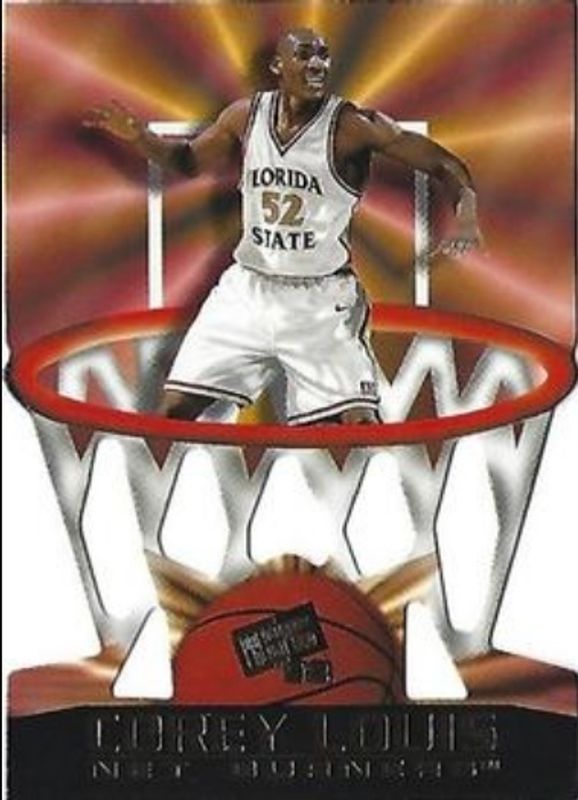 The Corey Louis 1998 Press Pass Flagship #NB-29 Net Burners card is 1 of 7 Corey Louis' card variations in the 1998 Press Pass Flagship set being tracked by Sports Card Investor, including Base, In The Zone, Red, Reflectors, and Torquers.
