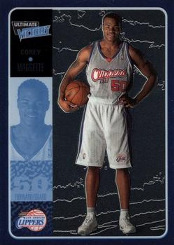The Corey Maggette 2000 Upper Deck Ultimate Victory #24 Base /1500 card is 1 of 4 Corey Maggette's card variations in the 2000 Upper Deck Ultimate Victory set being tracked by Sports Card Investor, including Victory Collection /350, Ultimate Collection /100, and Ultimate Victory /25.