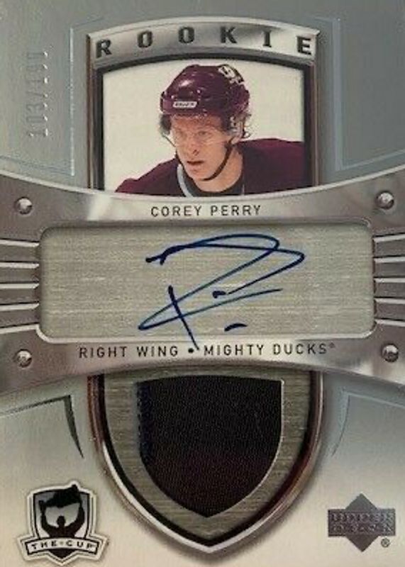 The Corey Perry 2005 Upper Deck The Cup #173 Rookie Patch Auto (/199) card in Raw condition has not changed in price in the last 30 days and was last sold for $135.57 .