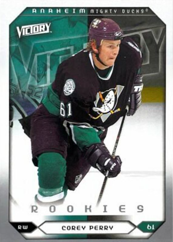 The Corey Perry 2005 Upper Deck Victory #281 Base Rookie card in Raw condition has moved up $0.11 (+6.7%) in the last 30 days and was last sold for $1.75 .