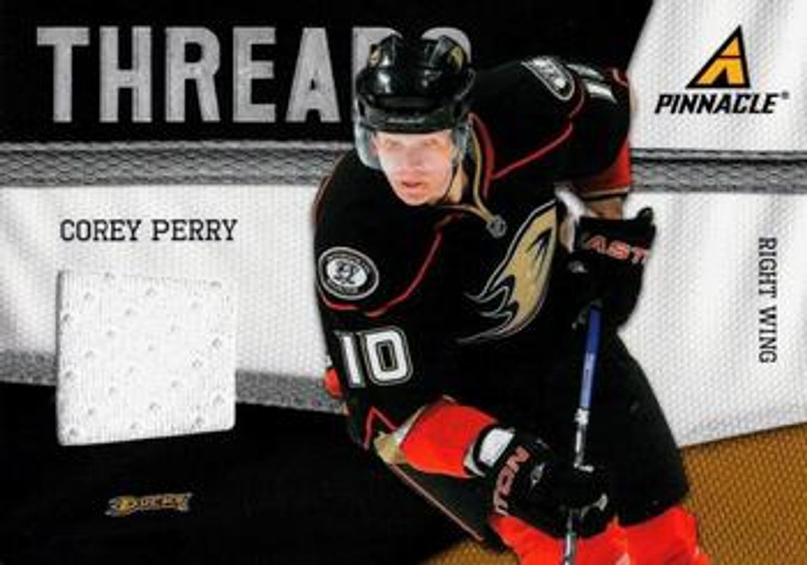 The Corey Perry 2011 Pinnacle #1 Threads card is 1 of 15 Corey Perry's card variations in the 2011 Pinnacle set being tracked by Sports Card Investor, including Base, Rink Collection, Printing Plate Black /1, Printing Plate Cyan /1, and Printing Plate Magenta /1.