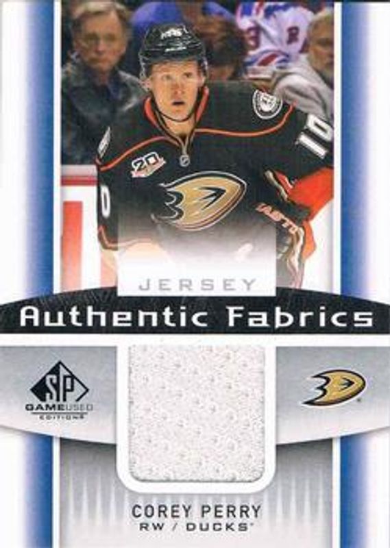 Corey Perry 2013 SP Game Used #AF-PE Authentic Fabrics RAW Price Guide