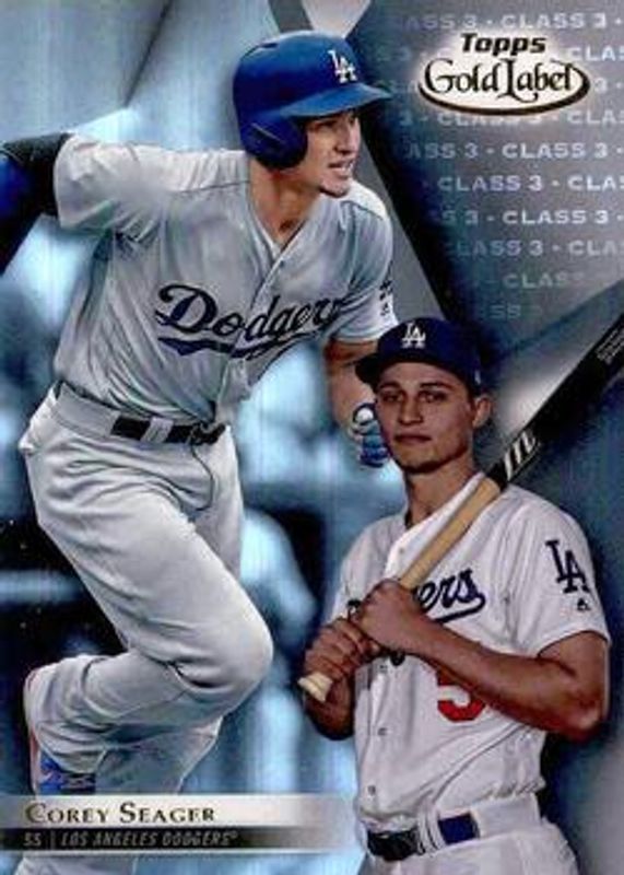 The Corey Seager 2018 Topps Gold Label #53 Class 3 card is 1 of 21 Corey Seager's card variations in the 2018 Topps Gold Label set being tracked by Sports Card Investor, including Class 1, Class 2, Class 1 - Black, Class 2 - Black, and Class 3 - Black.