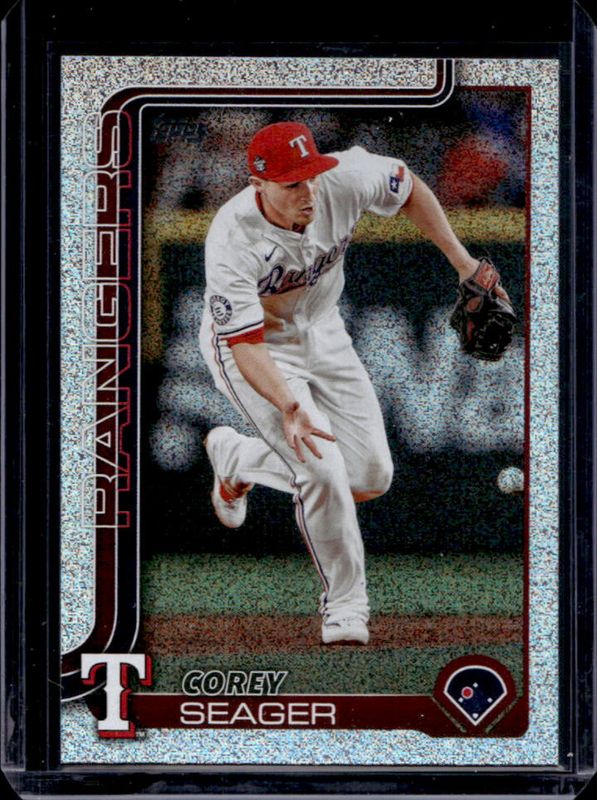The Corey Seager 2025 Topps #281 Sandglitter card is 1 of 159 Corey Seager's card variations in the 2025 Topps set being tracked by Sports Card Investor, including Base, Aqua Holo Foil, Diamante Foil, Holo Foil, and Pink Diamante Foil.