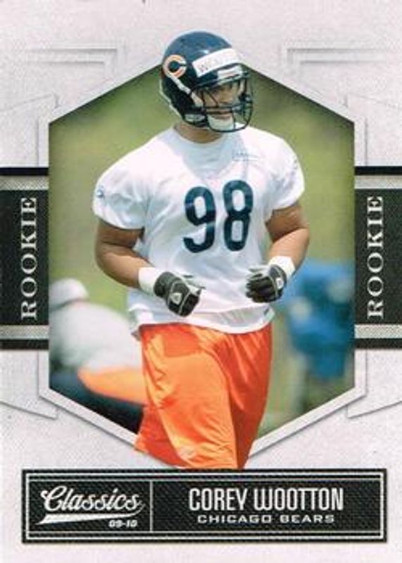 The Corey Wootton 2010 Classics #124 Base /999 Rookie card is 1 of 6 Corey Wootton's card variations in the 2010 Classics set being tracked by Sports Card Investor, including Timeless Tributes Silver /100, Timeless Tributes Gold /50, Timeless Tributes Platinum /25, Significant Signatures - Gold /99, and Significant Signatures - Platinum /25.