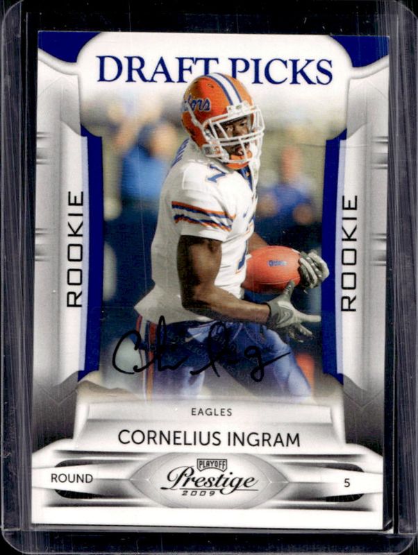 The Cornelius Ingram 2009 Playoff Prestige #125 Draft Picks Autographs /499 Rookie card is 1 of 15 Cornelius Ingram's card variations in the 2009 Playoff Prestige set being tracked by Sports Card Investor, including Base, Xtra Points Orange /300, Xtra Points Gold /250, Xtra Points Red /100, and Xtra Points Purple /50.