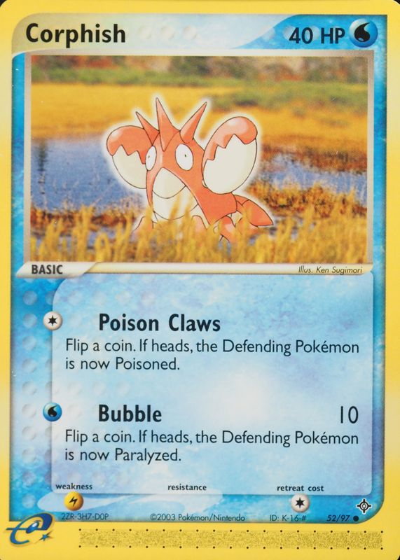 Corphish 2003 EX: Dragon #52/97 Base RAW TCG (NEAR MINT) Price Guide