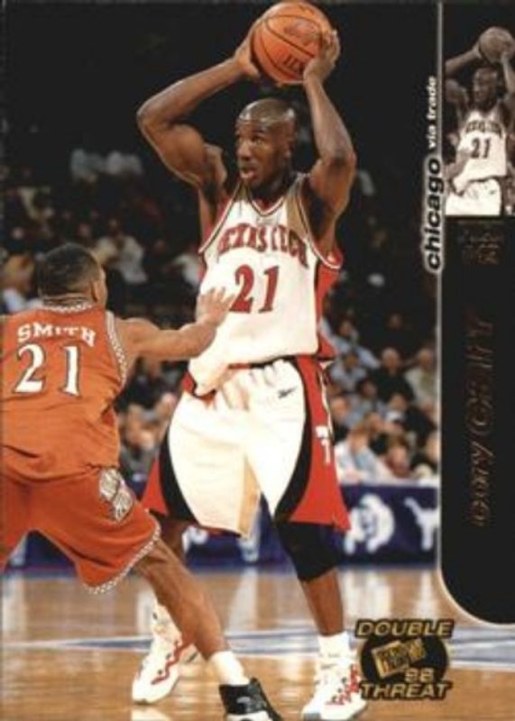Other popular players in the 1998 Press Pass Double Threat set include Michael Olowokandi, Mike Bibby, Raef LaFrentz, Paul Pierce, and Vince Carter.