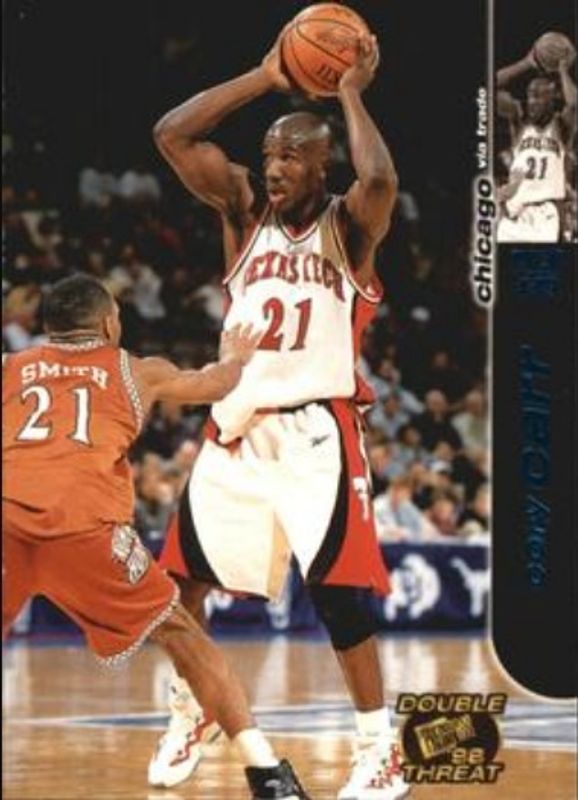 Other popular players in the 1998 Press Pass Double Threat set include Tim Thomas (NBA), Al Harrington, Andrae Patterson, Antoine Walker, and Bonzi Wells.