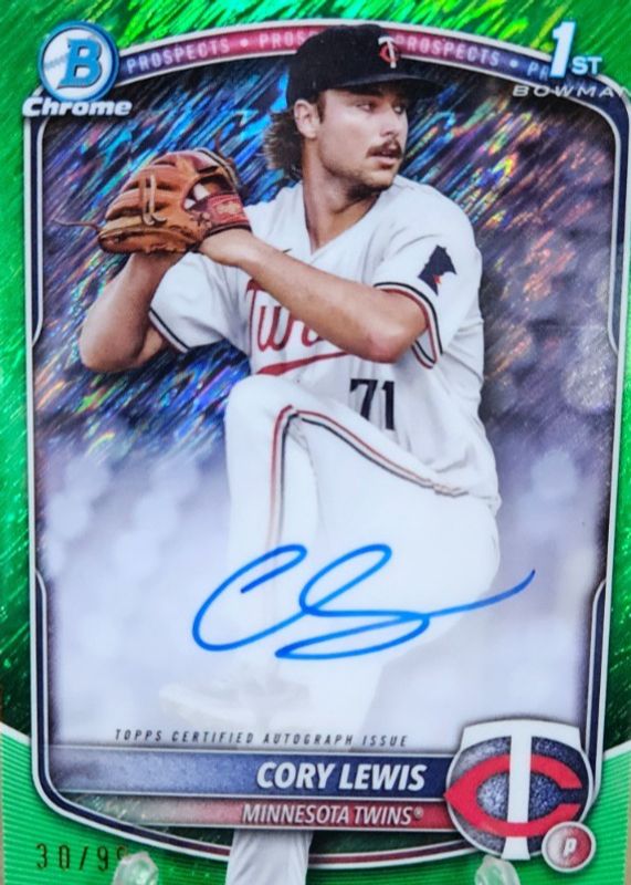 2025 Bowman Cory Lewis 1st Bowman Chrome Green Shimmer Auto Minnesota Twins /99