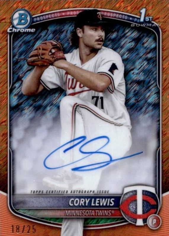 2025 Bowman Chrome Cory Lewis 1st Orange Shimmer Refractor Auto /25 Twins