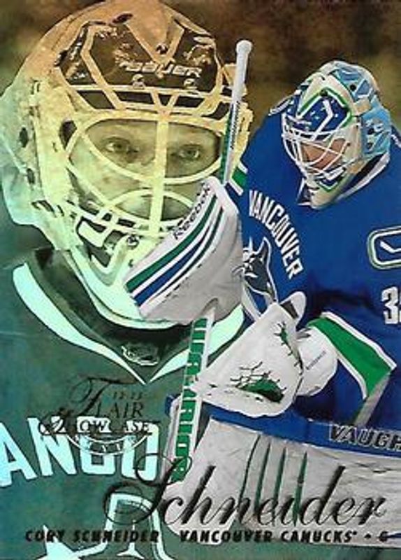 The Cory Schneider 2012 Fleer Retro #33 Flair Showcase Row 2 card is 1 of 12 Cory Schneider's card variations in the 2012 Fleer Retro set being tracked by Sports Card Investor, including 1993 Ultra, 1993 Ultra Autographs, E X 2001, Metal Universe, and Flair Showcase Row 2 Legacy Collection /150.