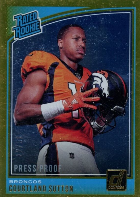 2018 DONRUSS PRESS PROOF GOLD RATED ROOKIE COURTLAND SUTTON #312 /50 NMT