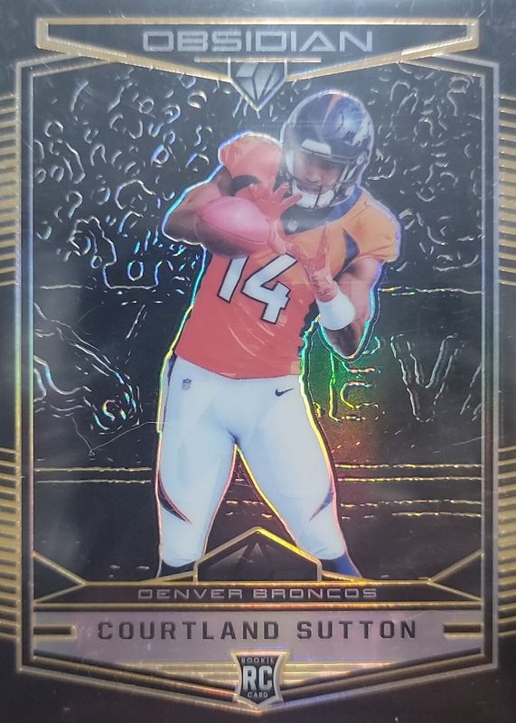 This card is 1 of 25 Courtland Sutton's card variations in the 2018 Obsidian set being tracked by Sports Card Investor, including Base /100, Electric Etch Purple /75, Electric Etch Green /25, Electric Etch Yellow /10, and Electric Etch Red /5.