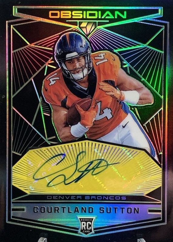 This card is 1 of 25 Courtland Sutton's card variations in the 2018 Obsidian set being tracked by Sports Card Investor, including Base /100, Electric Etch Purple /75, Electric Etch Orange /50, Electric Etch Green /25, and Electric Etch Yellow /10.