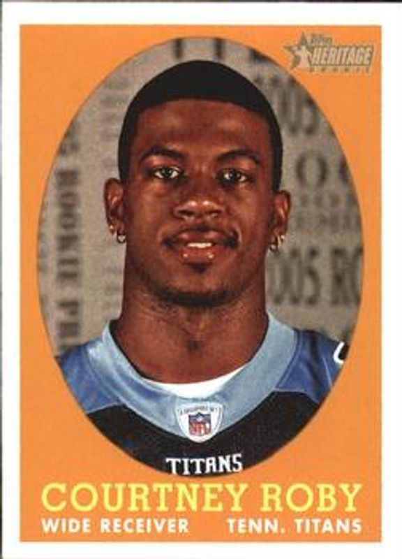 The Courtney Roby 2005 Topps Heritage #68b Base Rookie card is 1 of 6 Courtney Roby's card variations in the 2005 Topps Heritage set being tracked by Sports Card Investor, including #68a Base, #THC24a Foil, #THC24b Foil, #ROA-CR Real One Autographs, and #THC24 Rainbow Foil /50.