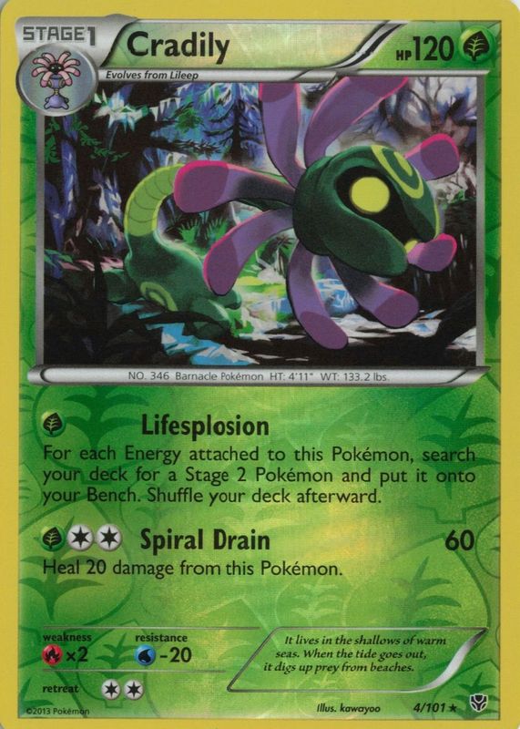 Cradily 2013 Black & White: Plasma Blast #004/101 Reverse Holo RAW TCG (LIGHTLY PLAYED) Price Guide