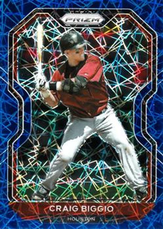 The Craig Biggio 2021 Prizm #10 Blue Velocity card is 1 of 43 Craig Biggio's card variations in the 2021 Prizm set being tracked by Sports Card Investor, including Base, Blue, Carolina Blue, Cosmic Haze, and Giraffe.