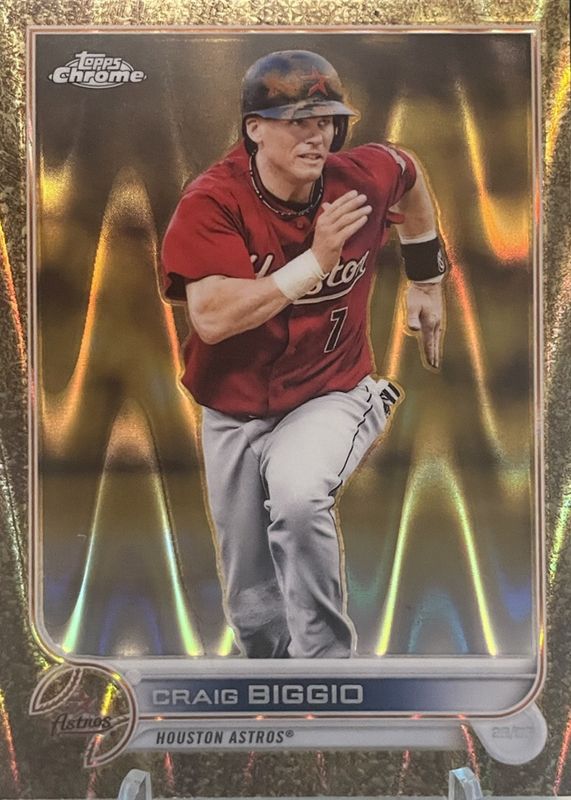 The Craig Biggio 2022 Topps Gilded Collection #121 RayWave Gold Etch Refractor /25 card in Raw condition has not changed in price in the last 30 days and was last sold for $30.00 .