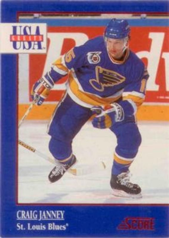 The Craig Janney 1992 Score #11 USA Greats card is 1 of 2 Craig Janney's card variations in the 1992 Score set being tracked by Sports Card Investor, including Base.