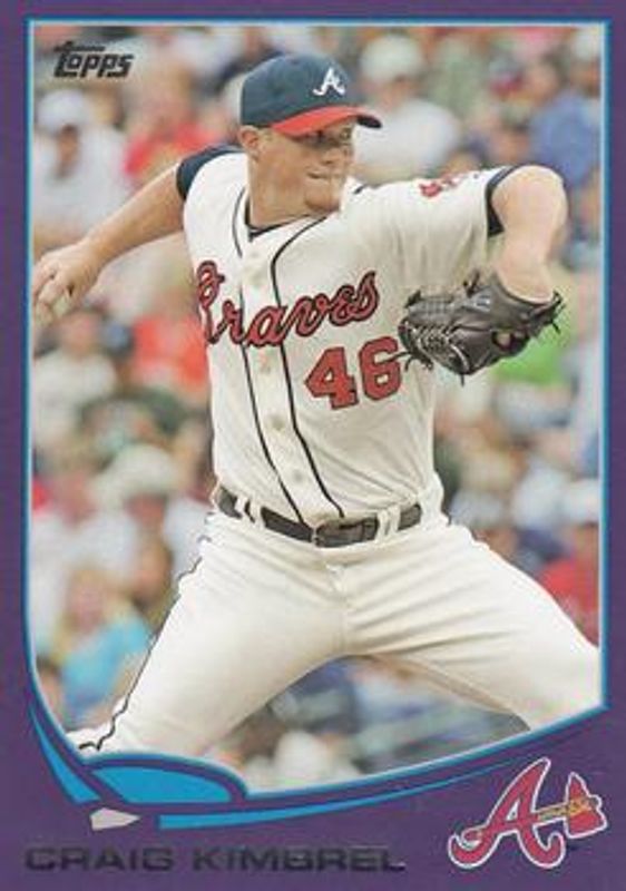 The Craig Kimbrel 2013 Topps #46 Purple card is 1 of 24 Craig Kimbrel's card variations in the 2013 Topps set being tracked by Sports Card Investor, including 1972 Topps Minis, Base, Rookie of the Year Award Winners Trophy, Silk Collection /50, and 1972 Topps Minis Relics /25.