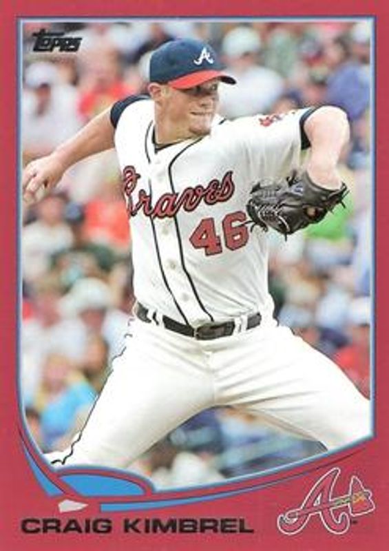 The Craig Kimbrel 2013 Topps #46 Red card is 1 of 24 Craig Kimbrel's card variations in the 2013 Topps set being tracked by Sports Card Investor, including 1972 Topps Minis, Base, Rookie of the Year Award Winners Trophy, Silk Collection /50, and 1972 Topps Minis Relics /25.
