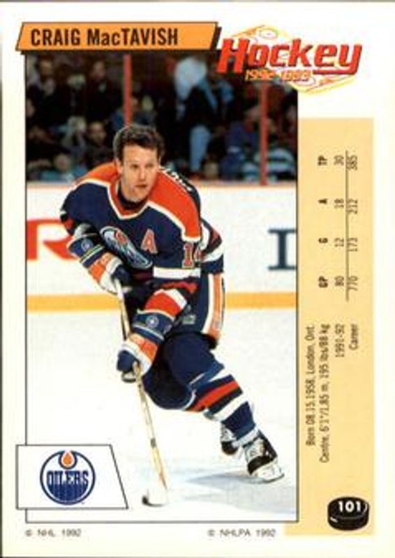Craig MacTavish 1992 Panini Stickers #101 Base RAW Price Guide