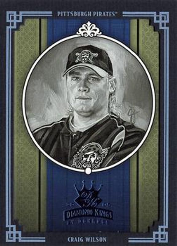 The Craig Wilson 2005 Diamond Kings #178 Framed Blue Black & White /100 card is 1 of 109 Craig Wilson's card variations in the 2005 Diamond Kings set being tracked by Sports Card Investor, including Base, Black & White, Framed Red, Framed Red Black & White, and Non Canvas.