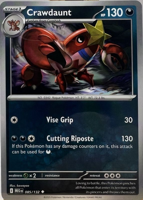 Crawdaunt 2025 Mega Evolution #085/132 Base RAW TCG (LIGHTLY PLAYED) Price Guide