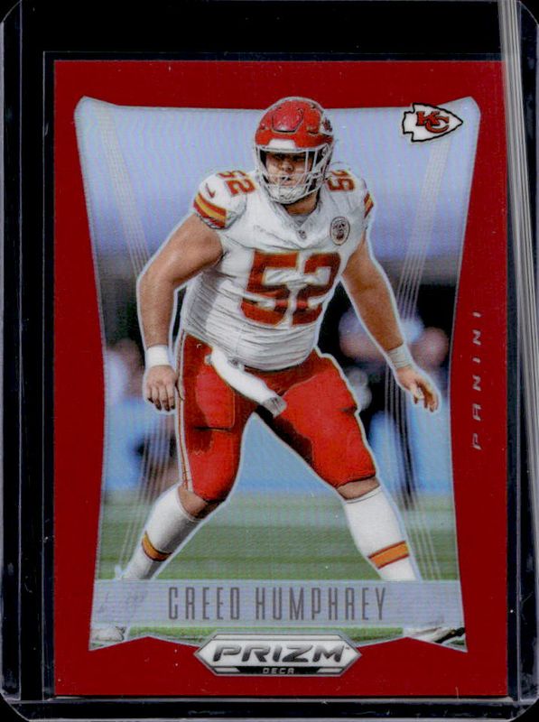The Creed Humphrey 2024 Prizm Deca #157 Red /199 card is 1 of 13 Creed Humphrey's card variations in the 2024 Prizm Deca set being tracked by Sports Card Investor, including Base, Silver, Blue /149, Purple /99, and Orange /49.