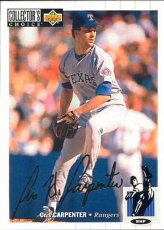 The Cris Carpenter 1994 Upper Deck Collector's Choice #73 Silver Signatures card is 1 of 3 Cris Carpenter's card variations in the 1994 Upper Deck Collector's Choice set being tracked by Sports Card Investor, including Base, and Gold Signatures.