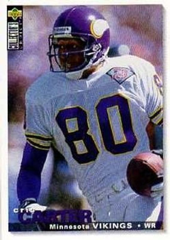 The Cris Carter 1995 Upper Deck Collector's Choice #98 Base card is 1 of 13 Cris Carter's card variations in the 1995 Upper Deck Collector's Choice set being tracked by Sports Card Investor, including #98 Platinum Player's Club, #98 Player's Club, #C21a You Crash the Game - Gold, #C21b You Crash the Game - Gold, and #C21c You Crash the Game - Gold.